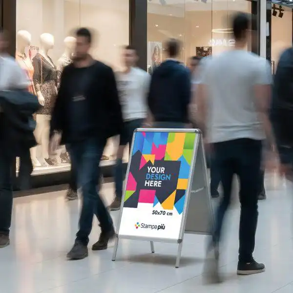Il cavalletto bifacciale 50×70 cm in alluminio è uno degli strumenti più utilizzati per la comunicazione visiva nel retail e negli eventi. Grazie alla doppia esposizione, consente di mostrare il messaggio su entrambi i lati, aumentando la visibilità e l’efficacia della comunicazione.