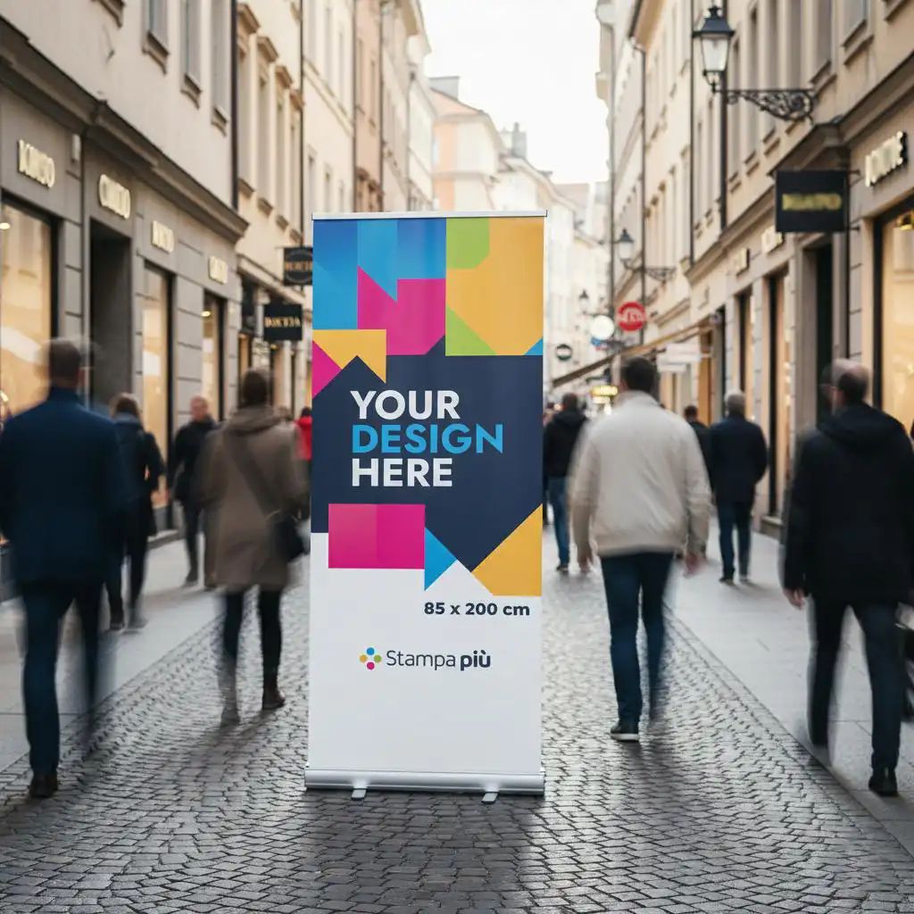 Il roll up classic 85×200 cm è uno degli espositori pubblicitari più utilizzati per la comunicazione visiva in ambienti professionali. Grazie al suo formato verticale e alla facilità di utilizzo, è perfetto per fiere, eventi aziendali, showroom e punti vendita.